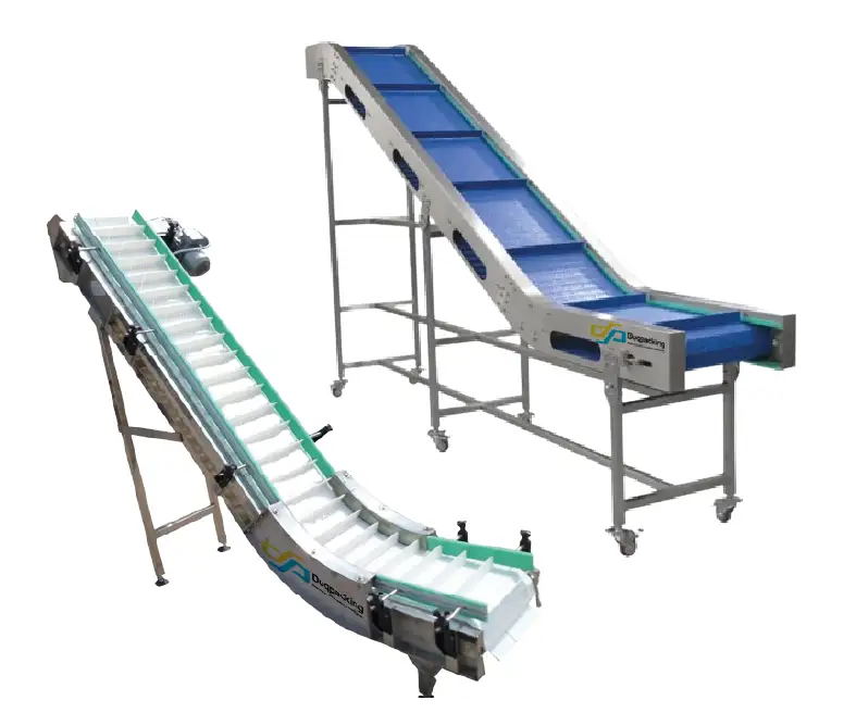 Permiten el movimiento vertical de productos, ideal para entornos con espacio limitado o para elevar materiales a tolvas o contenedores.